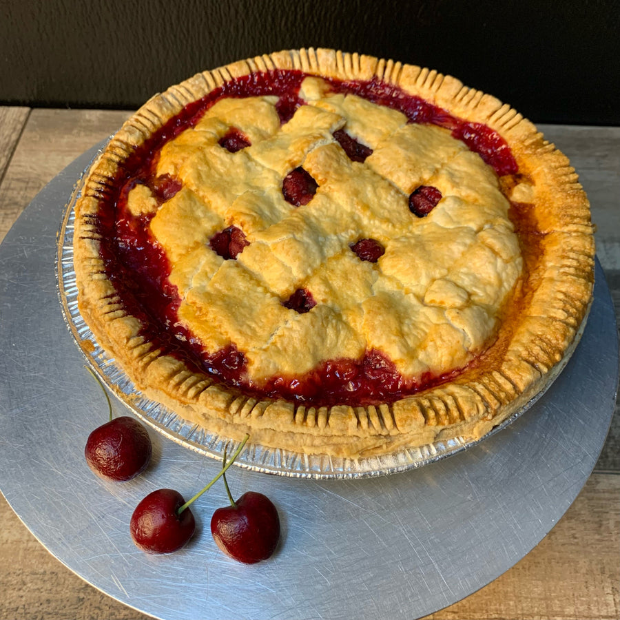 Treat yourself to the sweet-tart perfection of our cherry pie! Bursting with juicy, plump cherries in a rich, syrupy filling, each slice is a delightful balance of fruity sweetness and tangy flavor. All this goodness is enveloped in a flaky, golden crust that adds the perfect crunch to every bite. Indulge in a slice of our cherry pie for a taste of pure bliss.